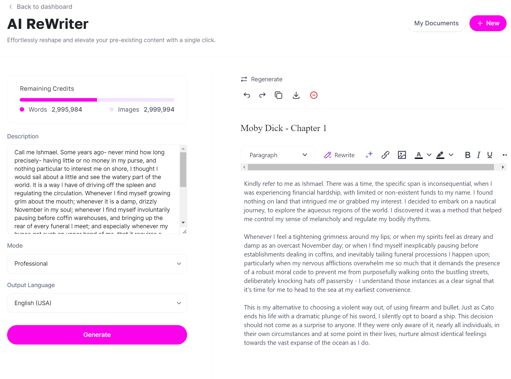 Whether you need to repurpose previous articles or you found a great article and want to reuse it for your own purposes but don't want to plagiarize the content, let's hlpr's AI Rewriter do the work for you.