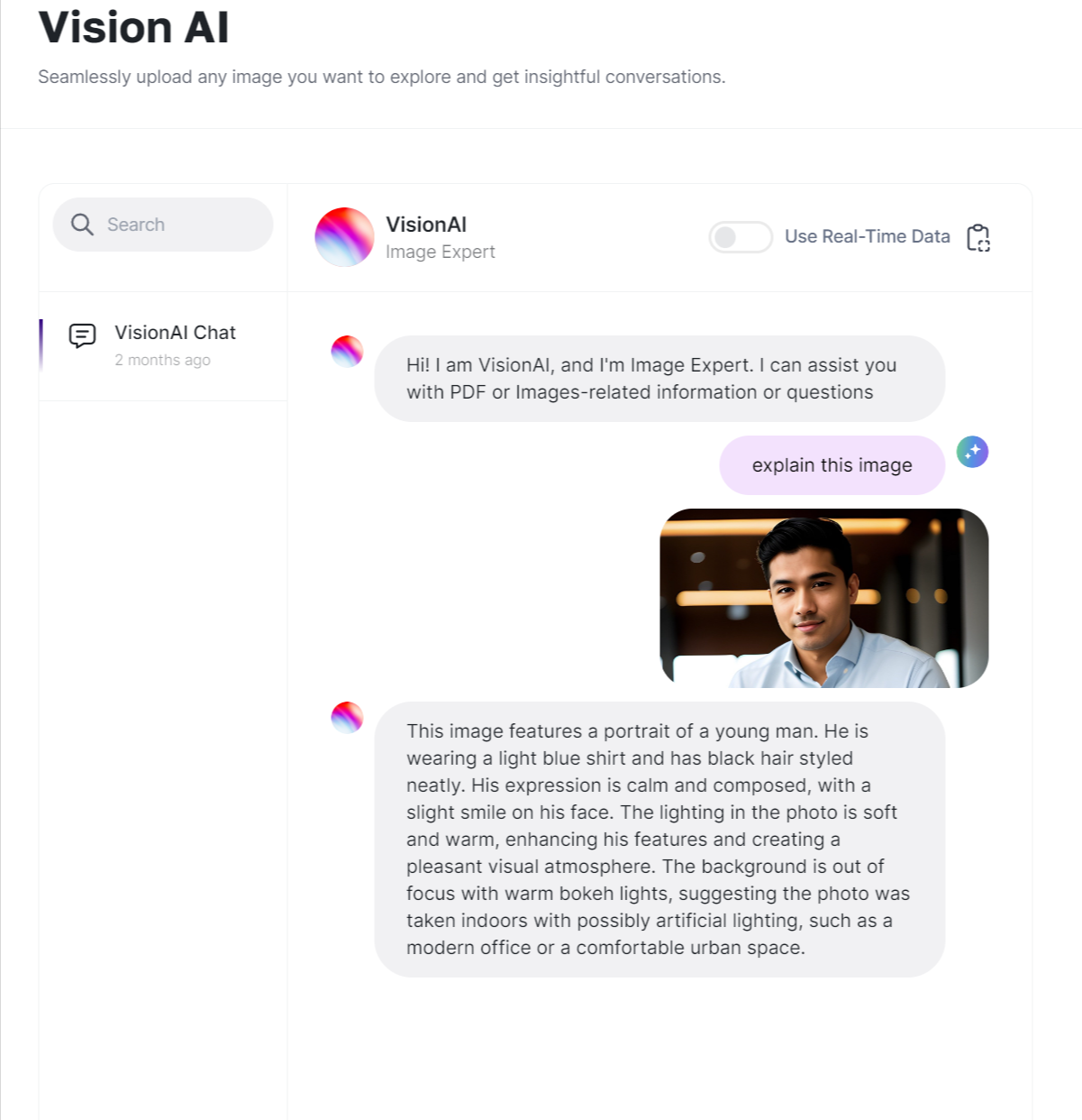 See images through the eyes of AI. With hlpr's AI Vision, you can upload an image and have hlpr explain what the image subject matter. Whether you're visually challenged or want to understand how AI interprets an images content, hlpr's AI vision is the perfect tool.